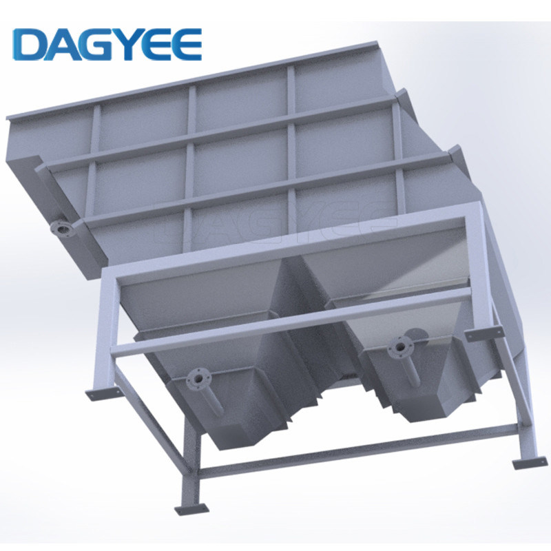 O formato do purificador inclinado da água da sedimentação da placa é instalar um 60° inclinou a tubulação acima da camada da suspensão da lama. Adicionando o floculante à lama, os sólidos ou as flores flocculent suspendidas do alume acumulam na lama fina, e então sob a tubulação inclinado na área superficial, as corrediças da camada da suspensão da lama de volta a confiam na gravidade, e estabelecem-se então no funil da coleção da lama, e são descarregadas no tanque da lama através da tubulação da lama para o tratamento separado ou a utilização detalhada. O supernatant aumenta gradualmente à tubulação da coleção para a descarga ou a reutilização.