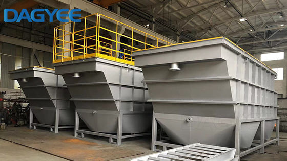 O formato do purificador inclinado da água da sedimentação da placa é instalar um 60° inclinou a tubulação acima da camada da suspensão da lama. Adicionando o floculante à lama, os sólidos ou as flores flocculent suspendidas do alume acumulam na lama fina, e então sob a tubulação inclinado na área superficial, as corrediças da camada da suspensão da lama de volta a confiam na gravidade, e estabelecem-se então no funil da coleção da lama, e são descarregadas no tanque da lama através da tubulação da lama para o tratamento separado ou a utilização detalhada. O supernatant aumenta gradualmente à tubulação da coleção para a descarga ou a reutilização.