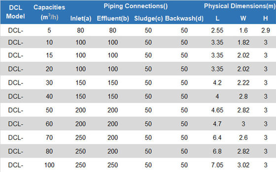 especificações do purificador do Lamella 50M3/hr |